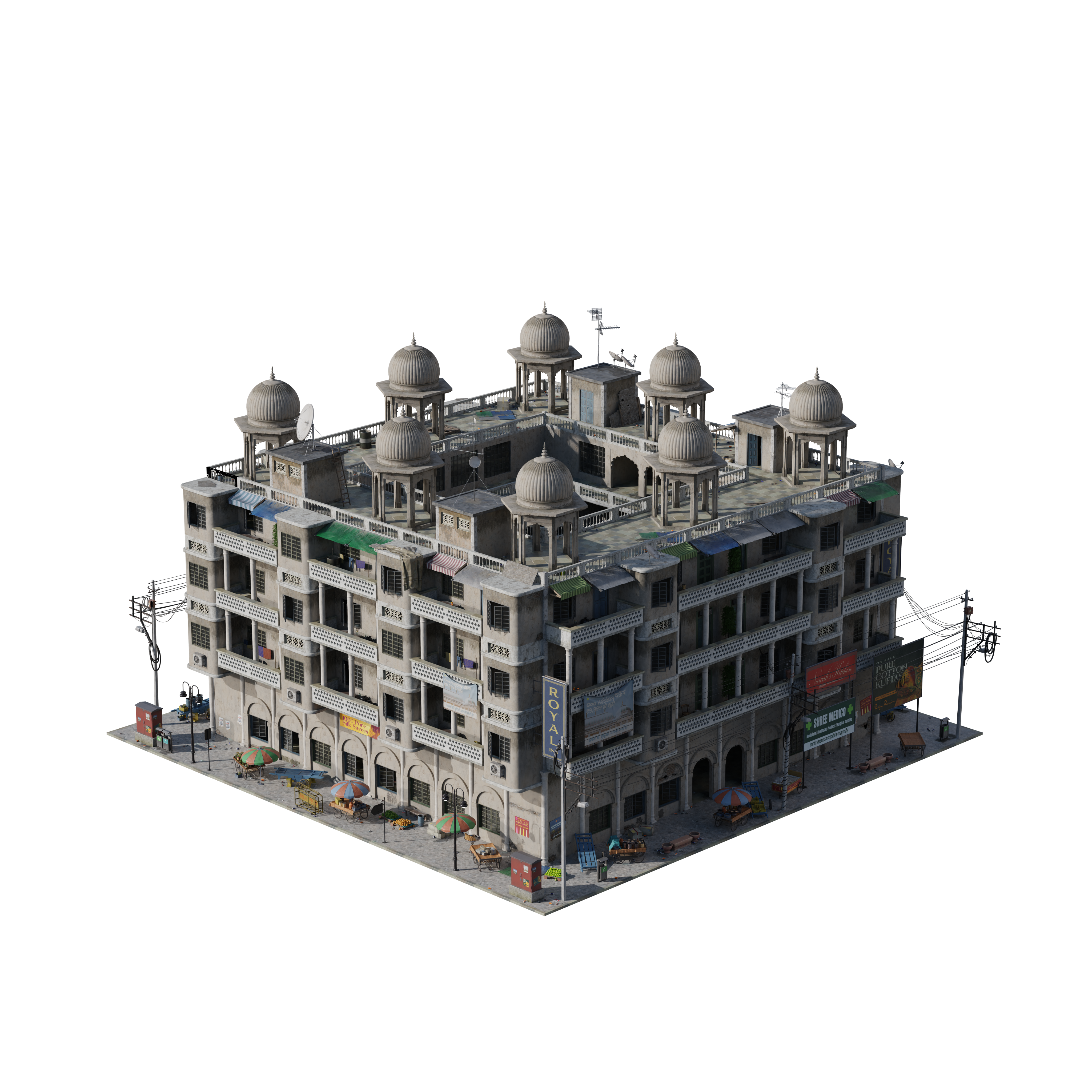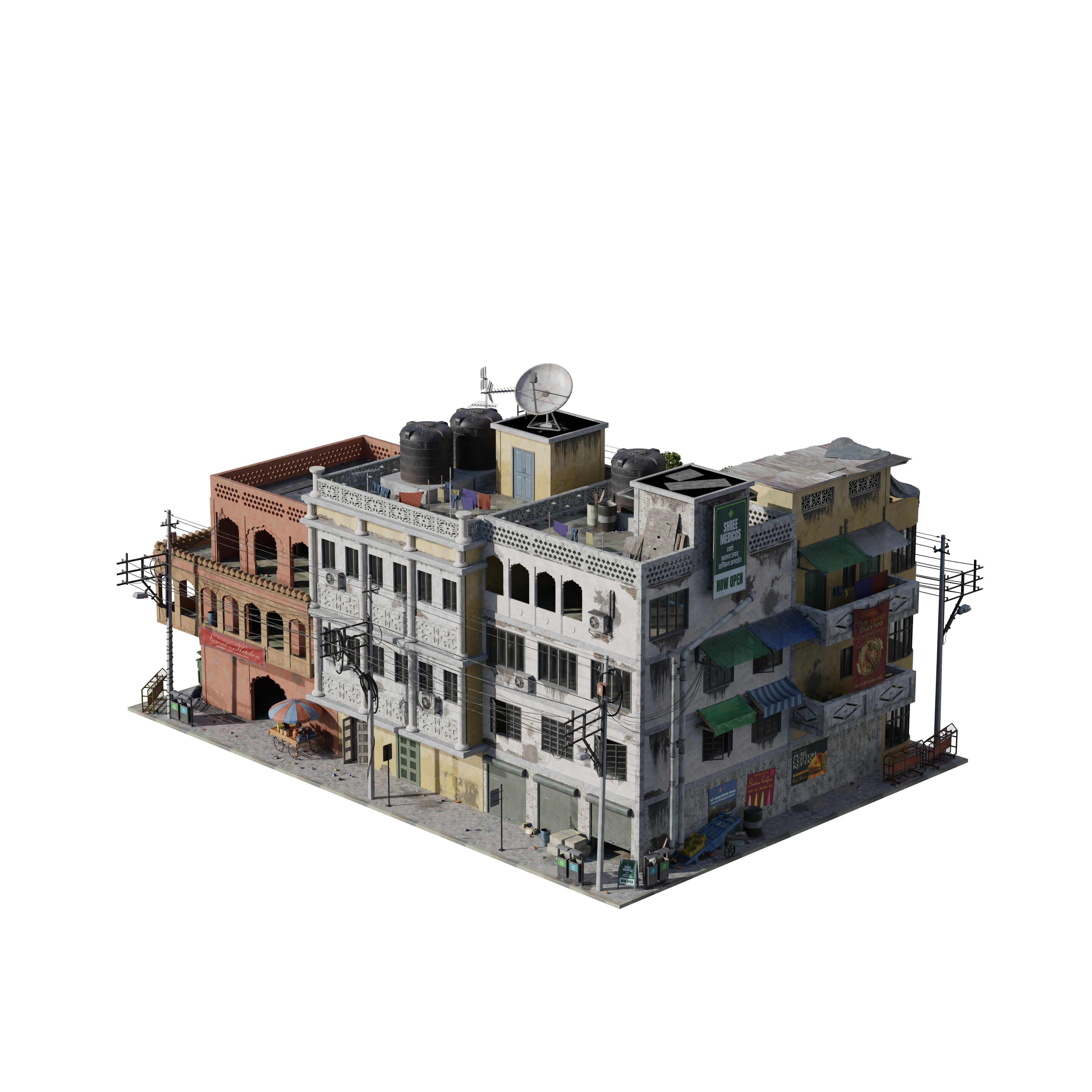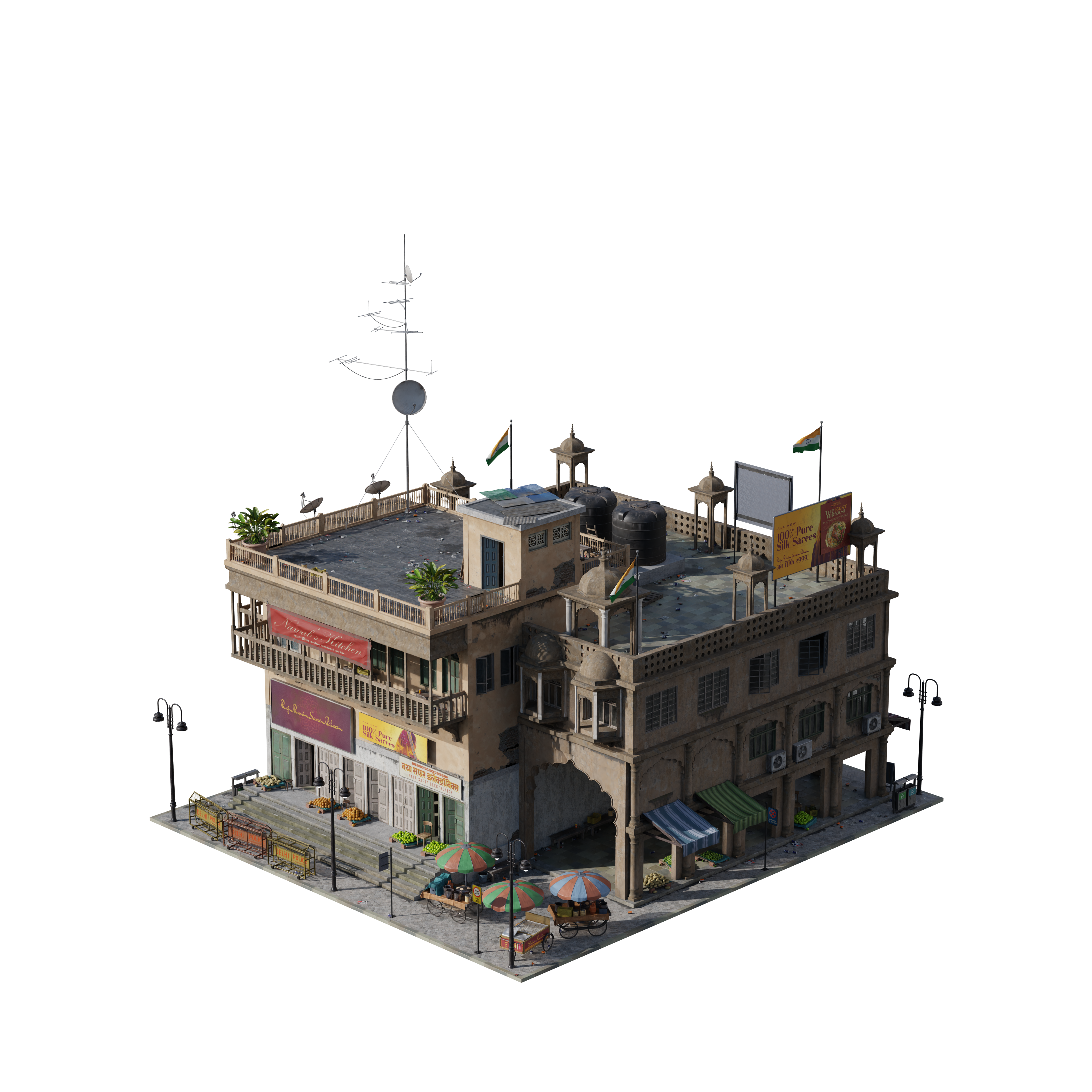 Bring the layered energy of India’s capital to your worlds with New Delhi. From arched gateways and colonial-era apartments to sprawling spice markets and modern shopping complexes, every asset is built to capture the textures, colors, and rhythm of a city where history and contemporary life collide. Whether you’re staging a bustling street scene or a sweeping urban vista, this Kit delivers authenticity, scale, and the energy of a city that never stands still.